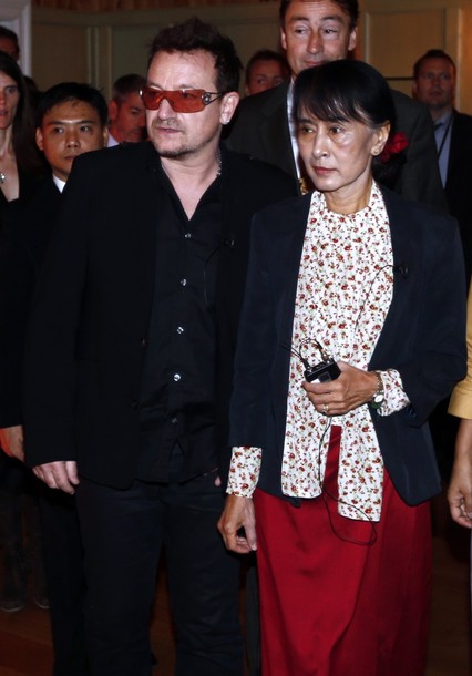 အဲဒီေနာက္ U2 အဖဲြ႔ရဲ႕ နာမည္ေက်ာ္ အဆိုေတာ္ Bono က ေဒၚေအာင္ဆန္းစုၾကည္ကို ဂီတပဲြနဲ႔ ဧည့္ခံေဖ်ာ္ေျဖမွာ ျဖစ္ပါတယ္။